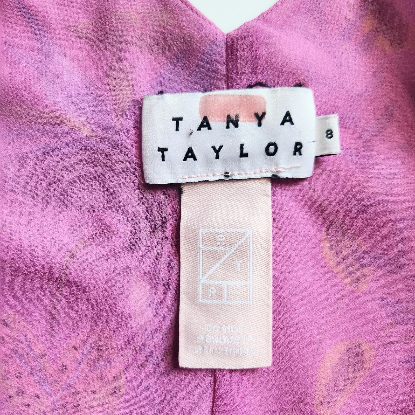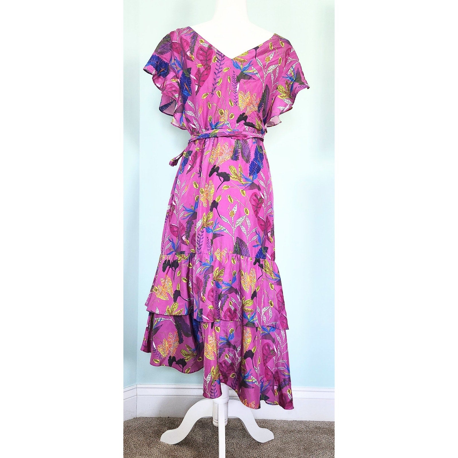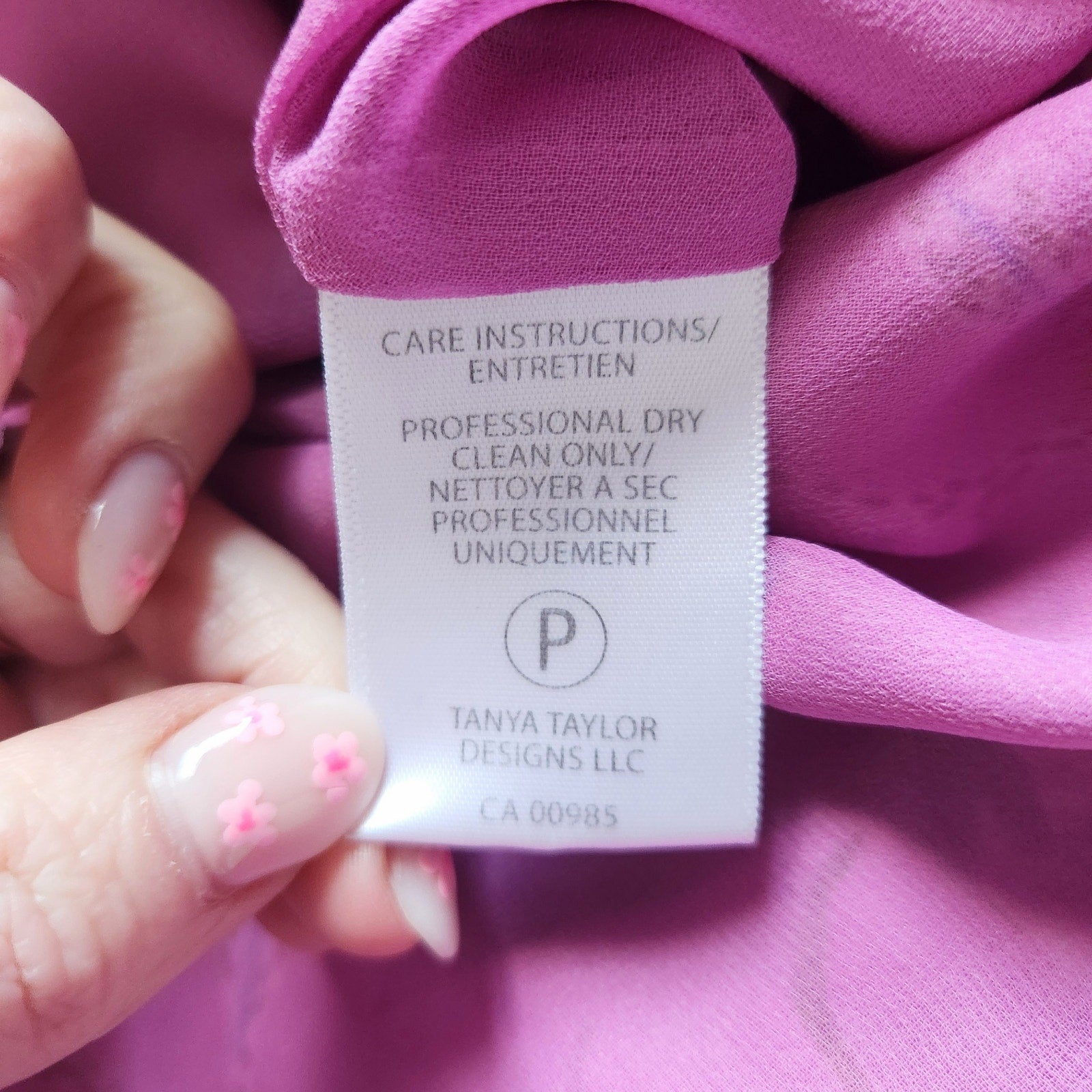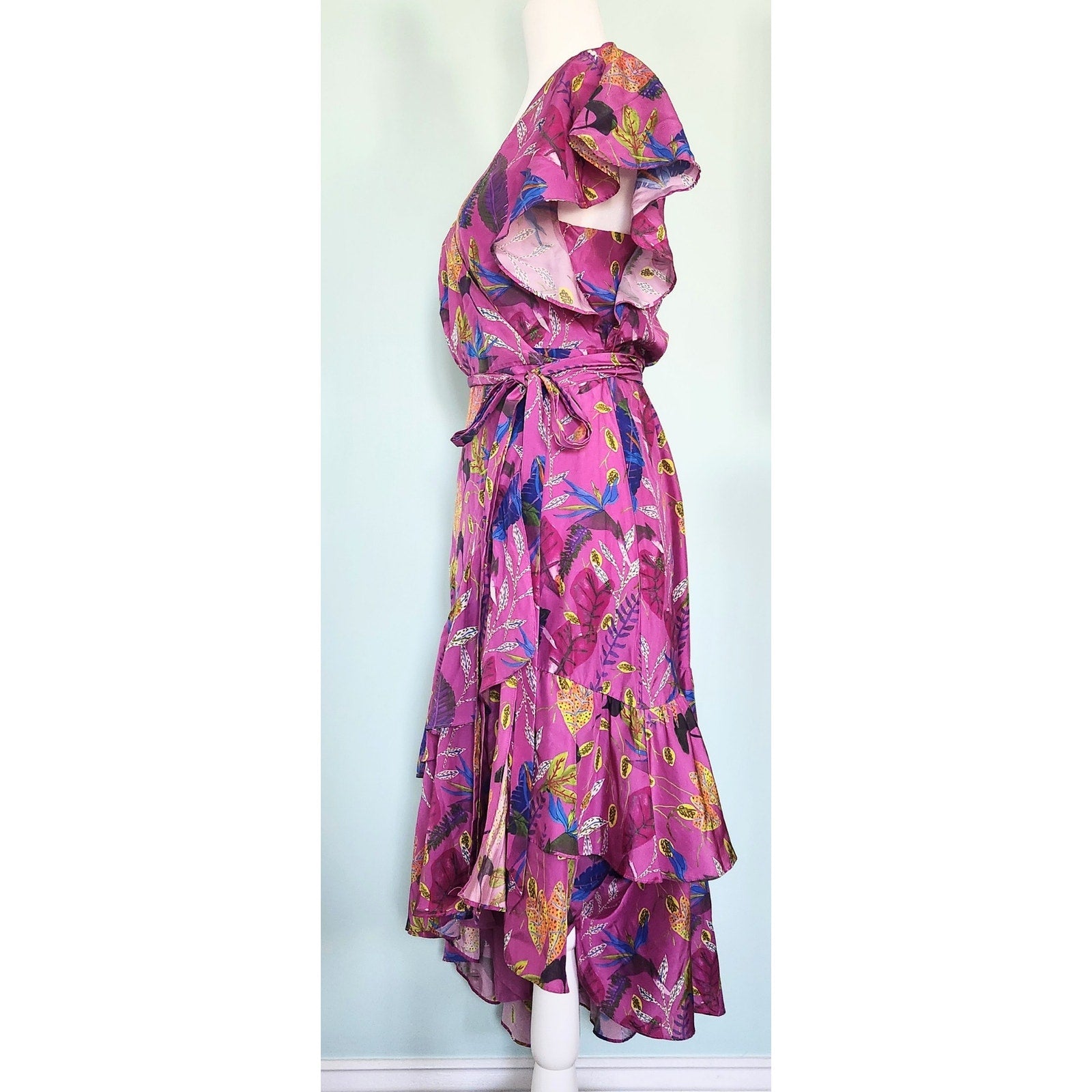 Tanya Taylor Dita Silk Wrap Ruffle Dress – Jungle Leaves Purple – Size 8