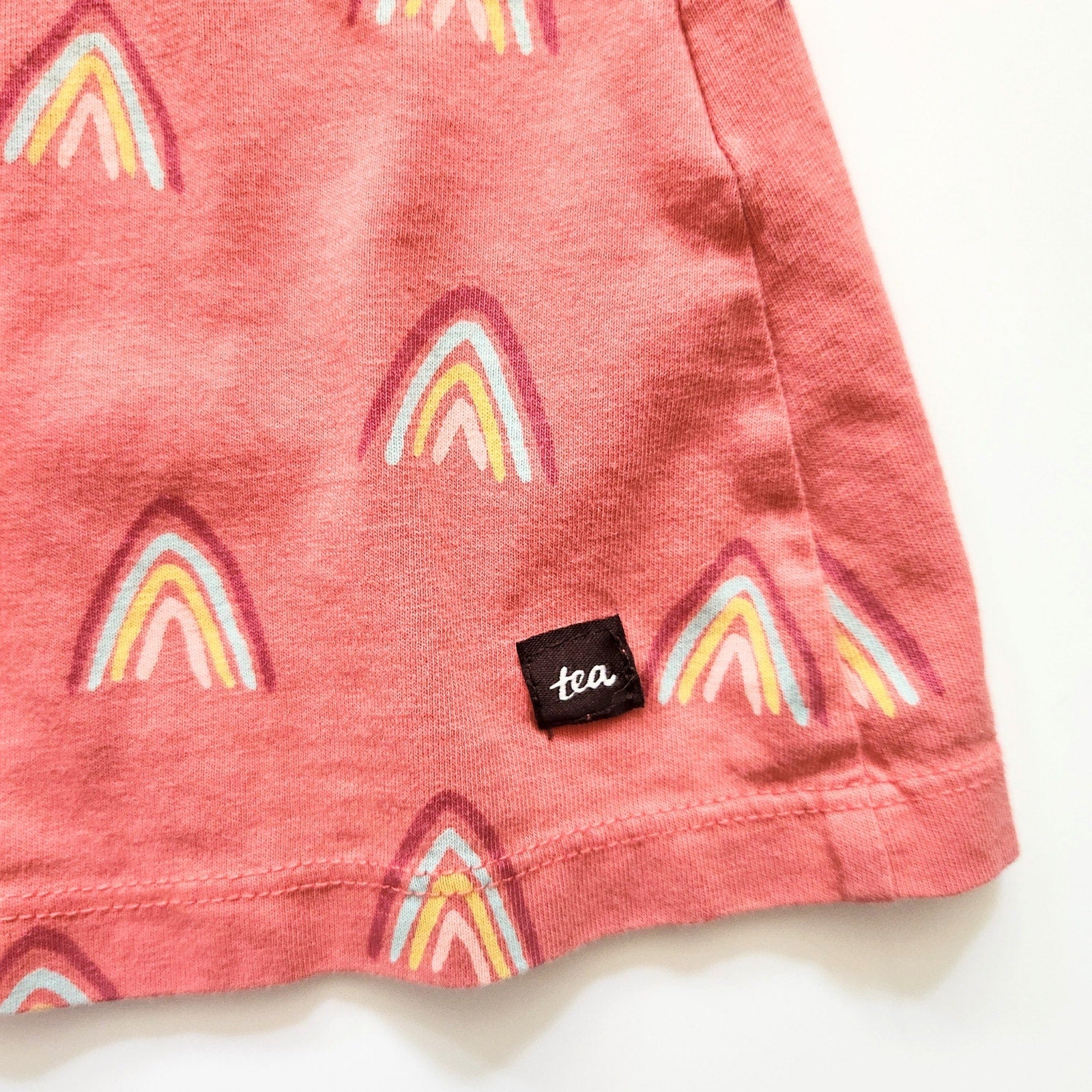 Tea Collection Coral Pink Sleeveless Rainbow Cotton Trapeze Dress Size 5 EUC