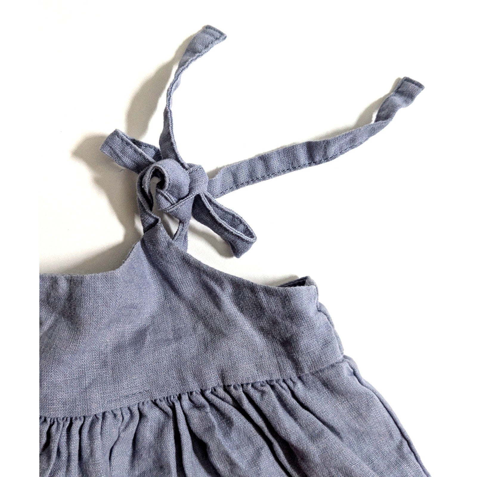 A full skirt, delicate shoulder ties, and pretty reddish pink floral embroidery are only three of the reasons we think this dress will be a favorite. This linen / cotton blend chambray dress is soft, lightweight and comfy, built to last season after season. Below mid-thigh length.