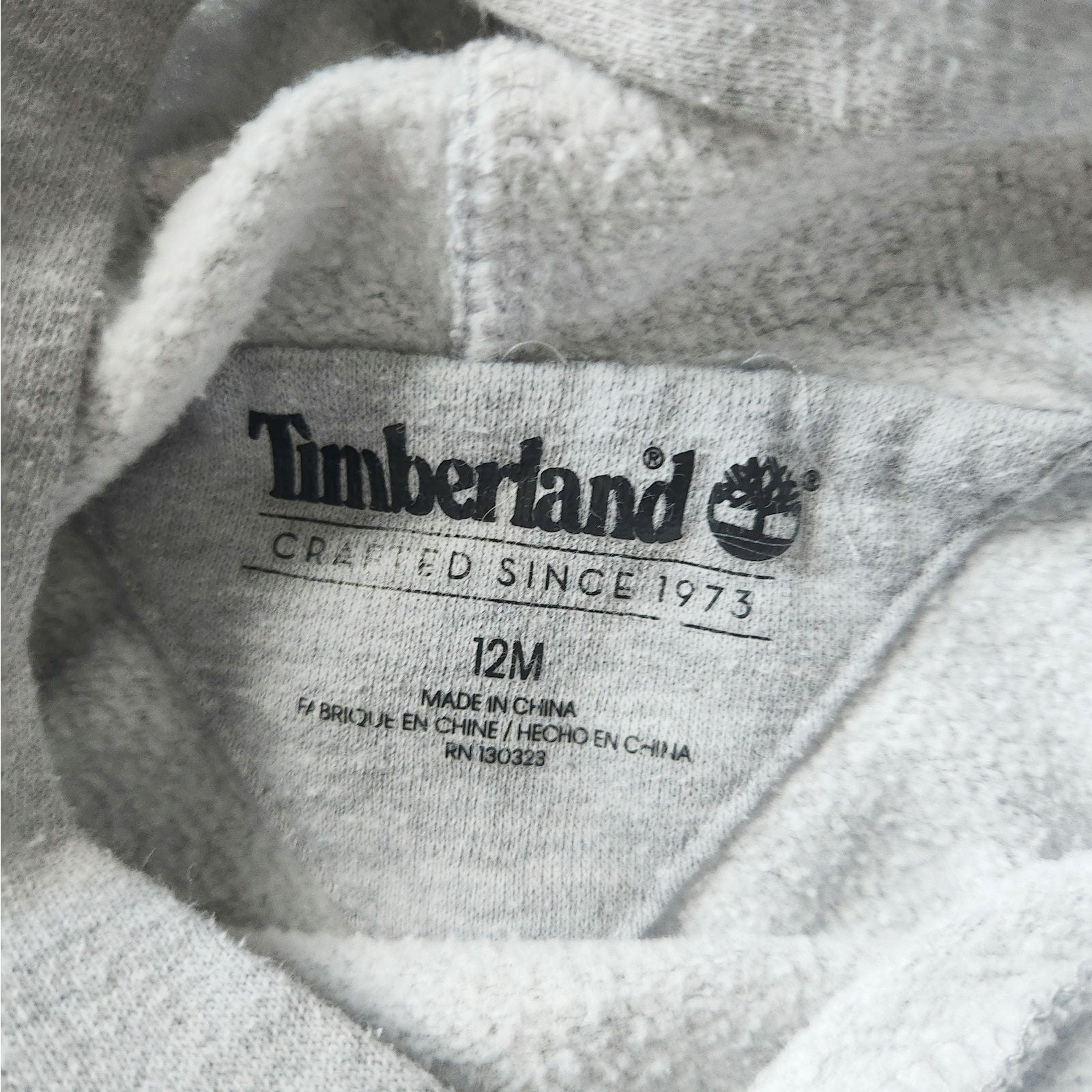 Timberland baby hoodie, logo sweatshirt, gray pullover hoodie, baby streetwear, unisex baby hoodie, 12 month Timberland, cozy fleece baby top, outdoor baby clothes, neutral baby outfit, toddler logo hoodie, fall baby fashion, cool weather baby wear