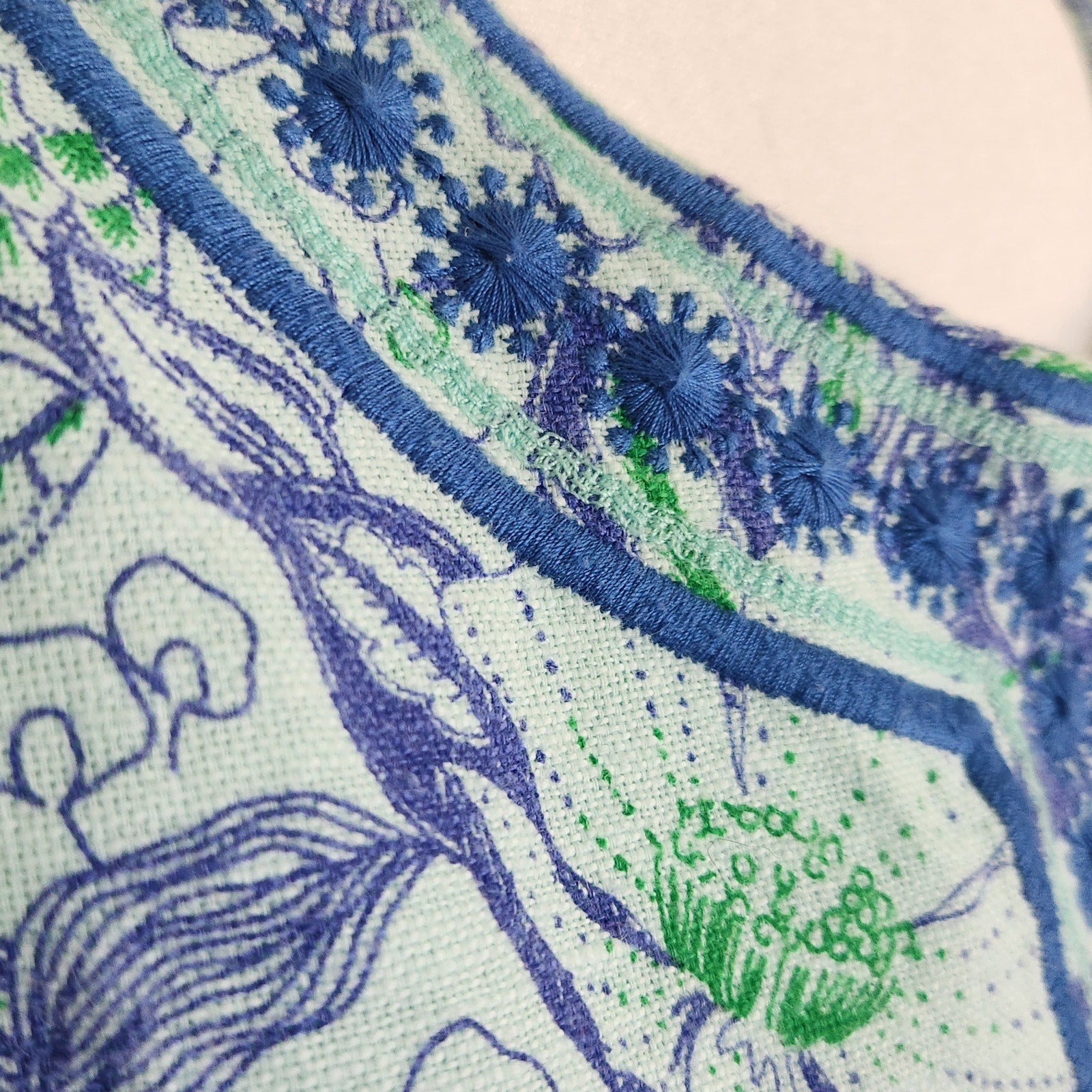 Vineyard Vines Linen Cordia Floral Embroidered Tunic Dress Wintermint Women's Size 4