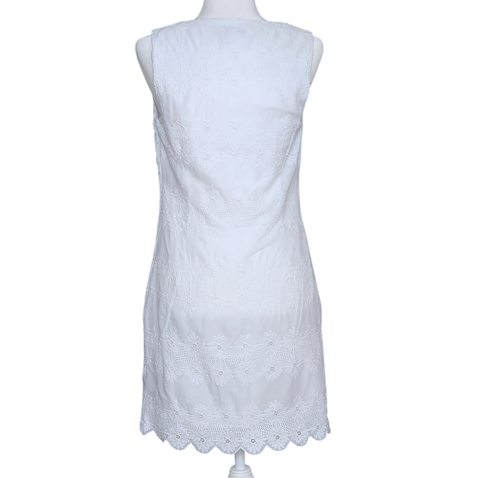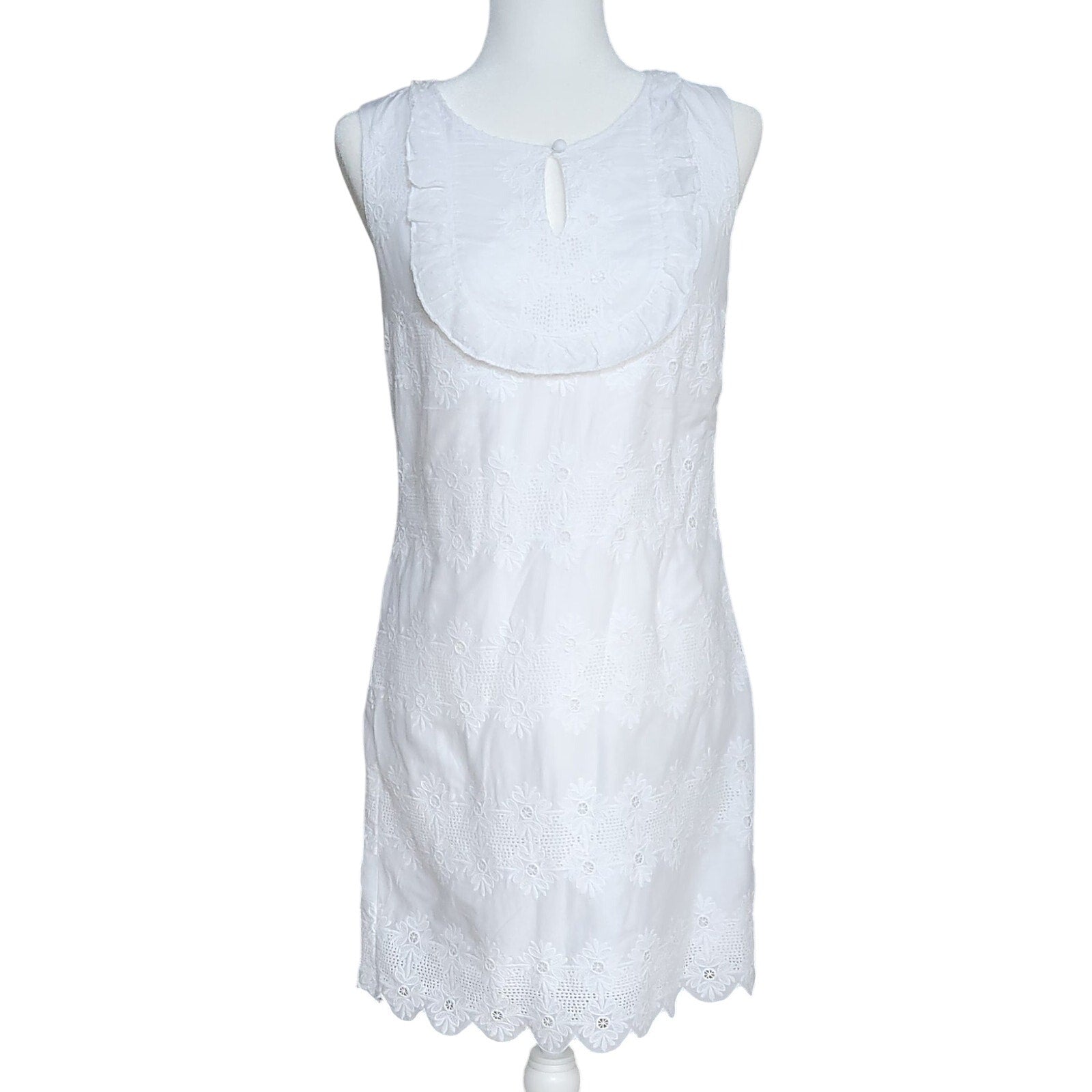 Vineyard Vines White Eyelet Cotton Shift Dress Women’s Size 4 Ruffled Bib Scalloped Hem