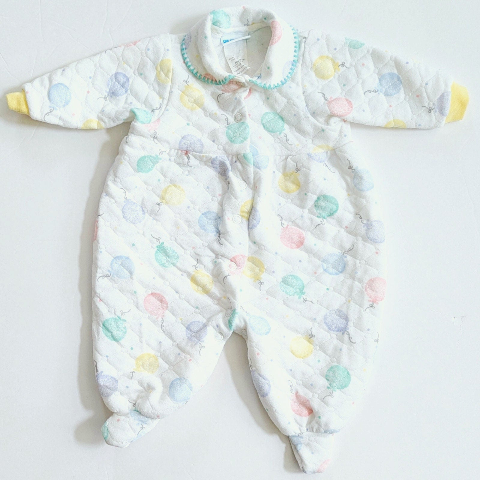 Vintage 1980s Carter’s Baby Sleeper 0-3M Footie One-Piece | Pastel Balloon Print Quilted