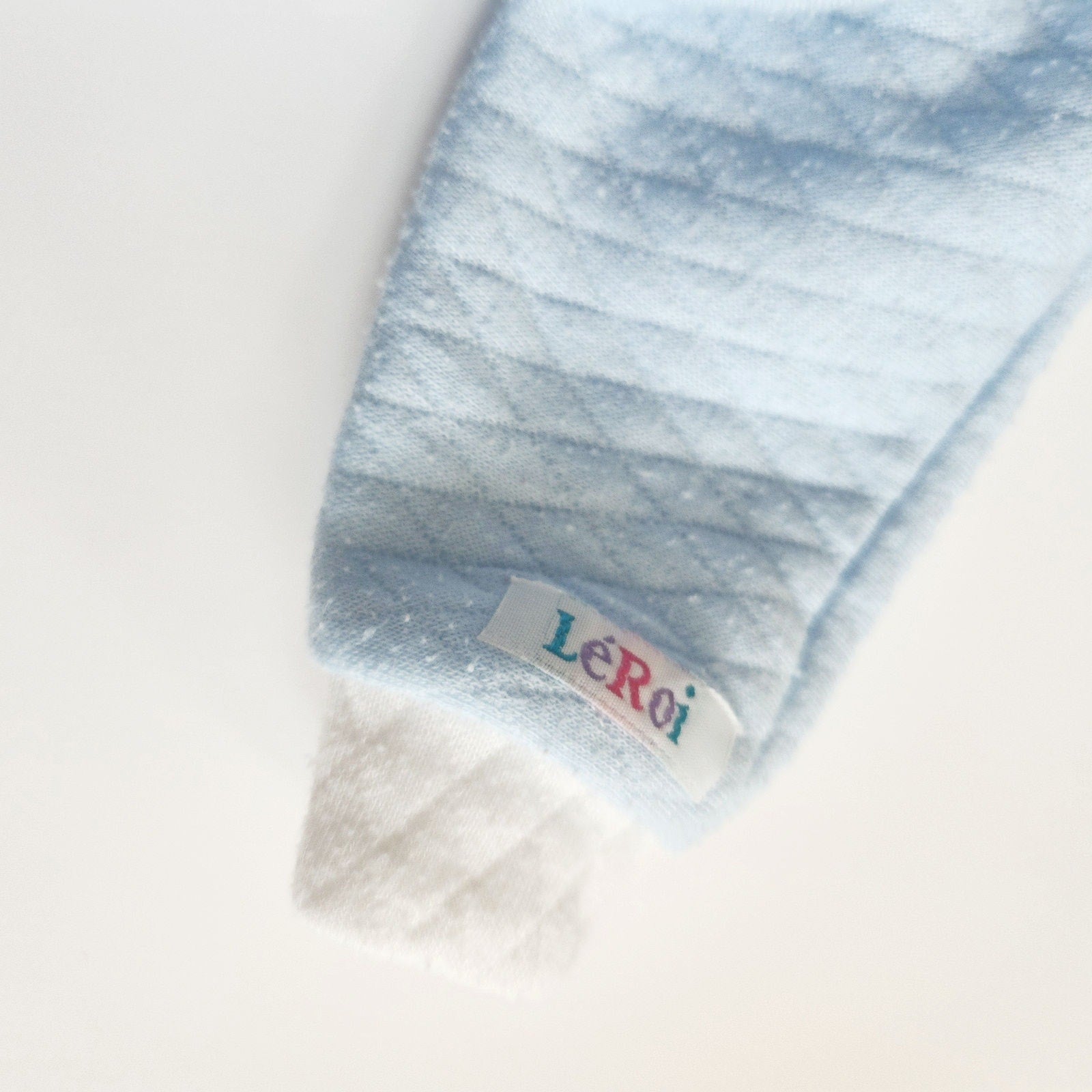 Bring home a piece of 1980s nostalgia with this vintage LéRoi Kov.R.Alls quilted baby sleeper. Made in the USA, this cozy footed romper features a charming chest embroidery of a teddy bear, duck, alphabet block, and Easter egg. The soft quilted fabric ensures warmth and comfort, while the back snap closure makes for easy changes. A timeless heirloom-quality piece for collectors, vintage lovers, or little one’s first special keepsake.