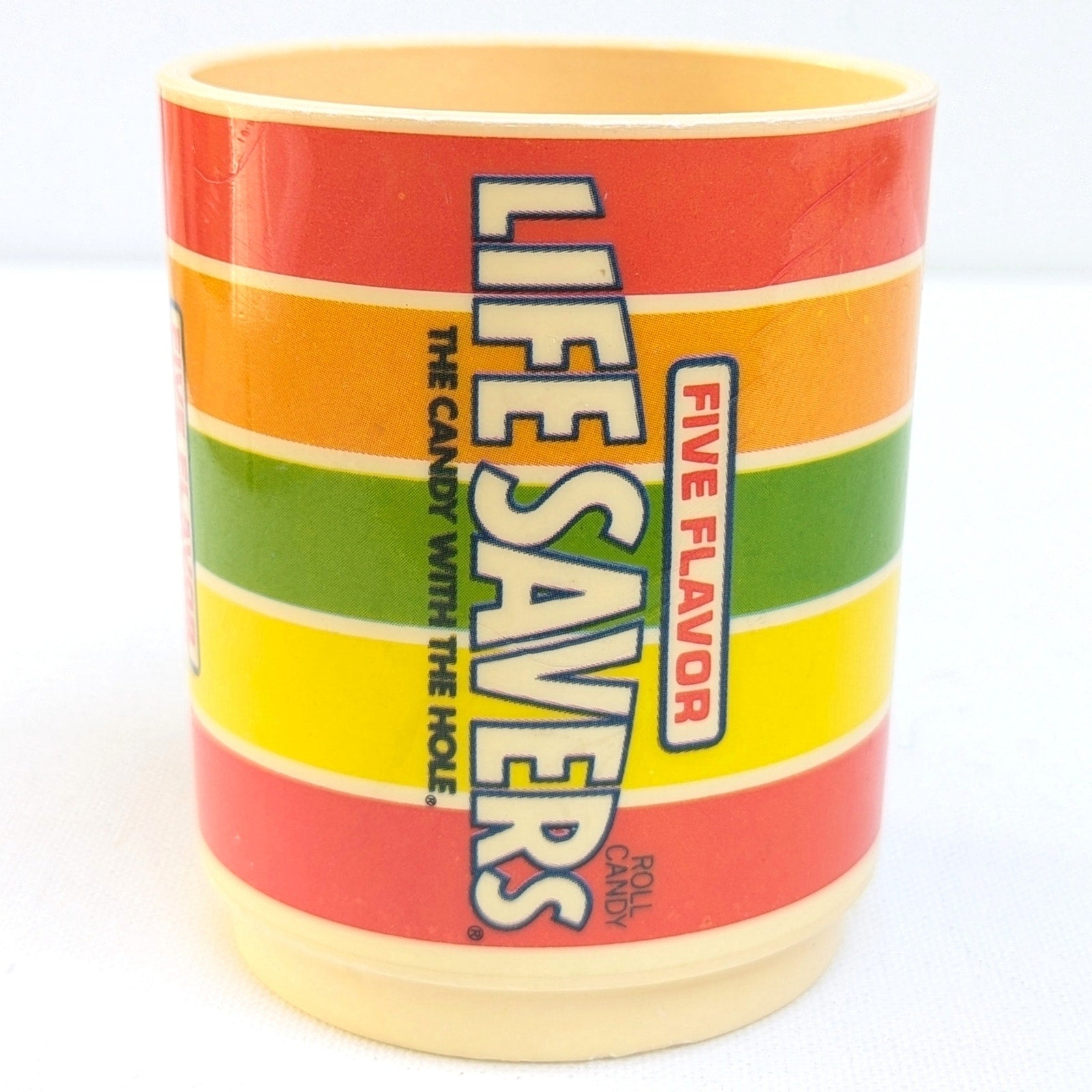 Vintage 1980s Lifesavers Five Flavor Promotional Mug – Retro Plastic Candy Cup – Bright Rainbow Home Kitchenware – Collectible Advertising Mug