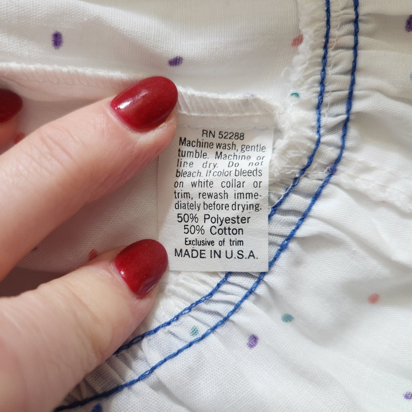 Pattern: White base with colorful polka dots in red, blue, purple, and green