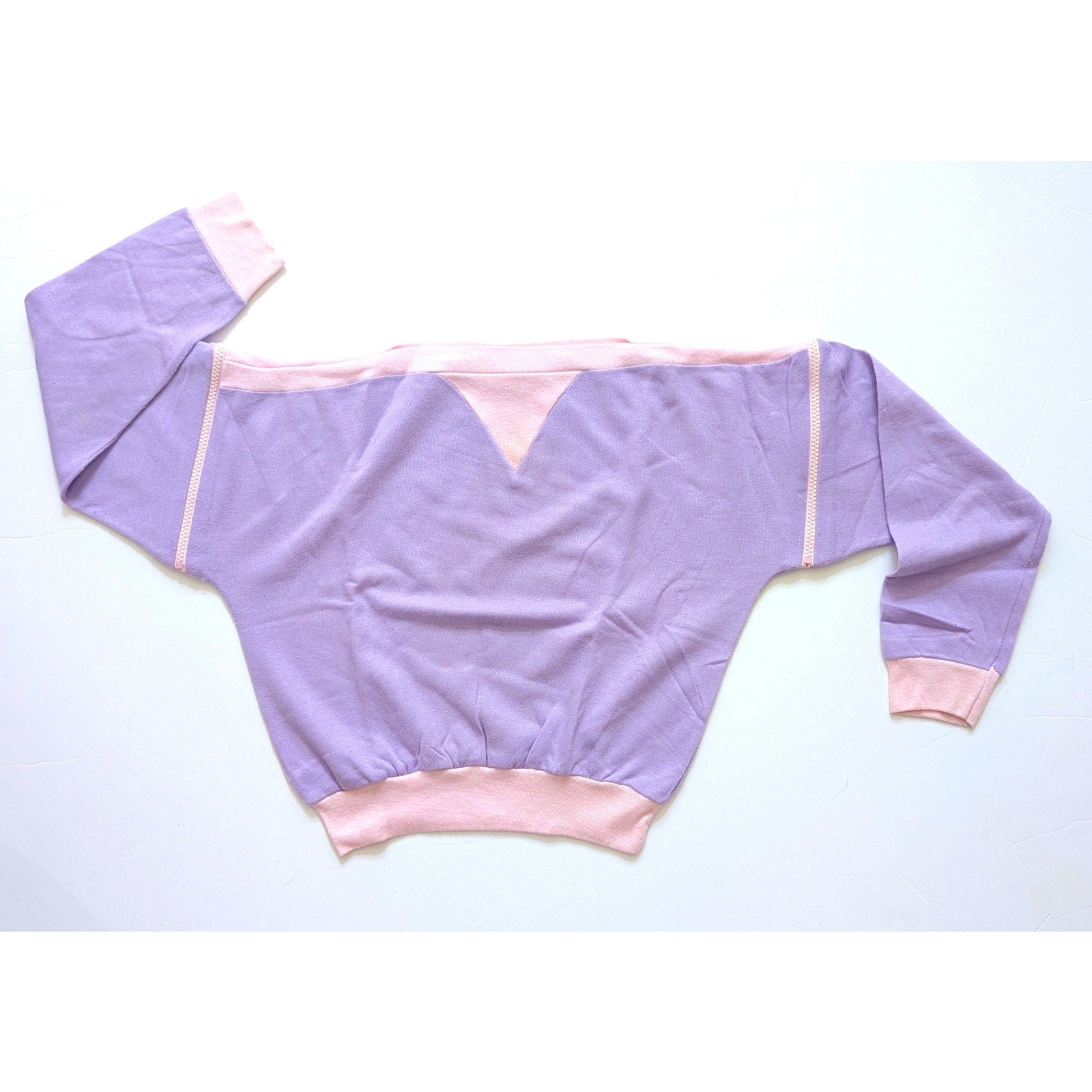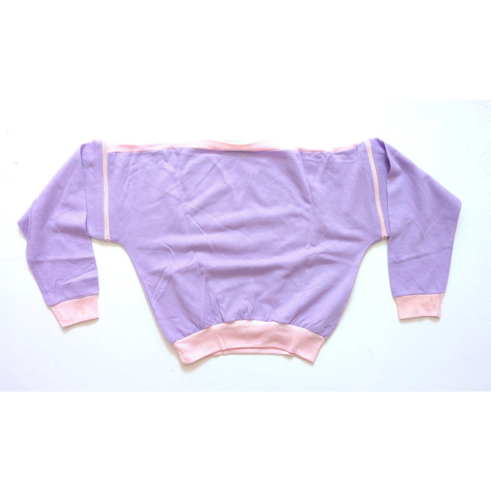 Totally rad and oh-so-retro, this authentic 1980s girls sweatshirt is a throwback treasure! Featuring a fun colorblock design in lavender purple and light pink, this sweatshirt is perfect for collectors, retro lovers, or anyone chasing that nostalgic 80s vibe.