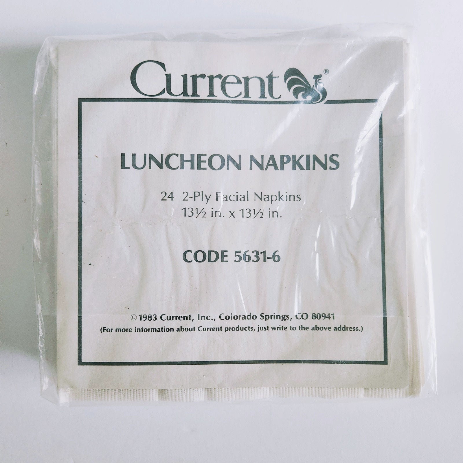 Condition: New old stock, still in original packaging. Some light shelf wear on packaging, but napkins inside are crisp and unused.