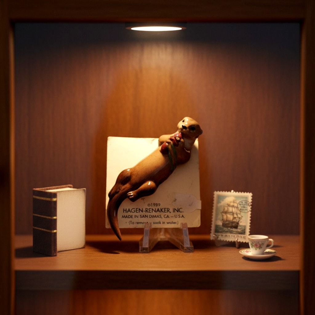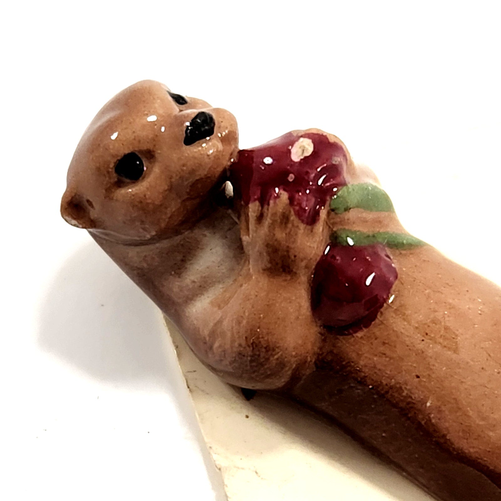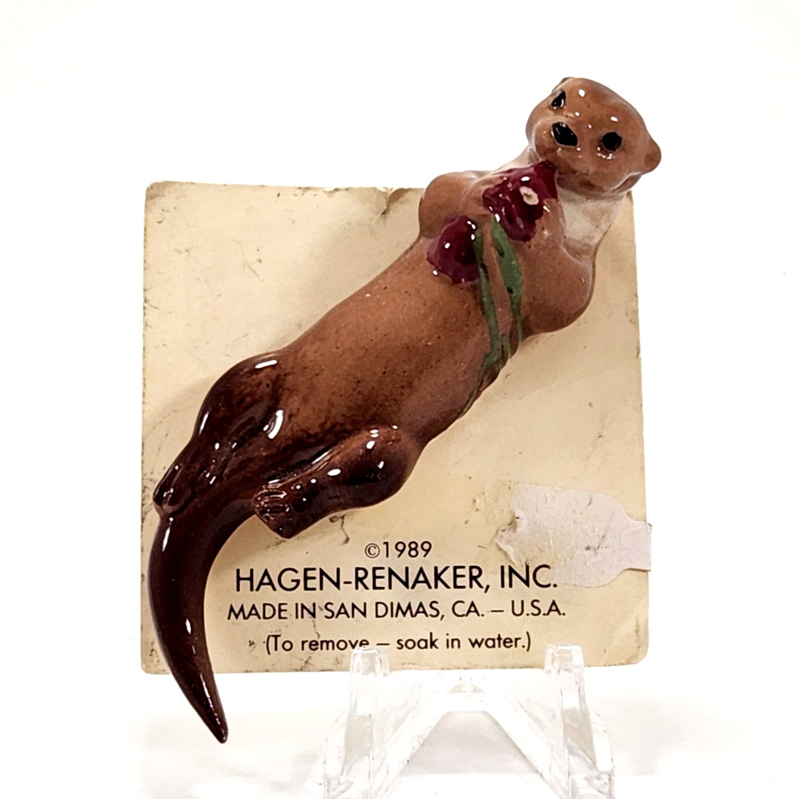 Vintage 1989 Hagen-Renaker Otter Figurine with Flowers – Walt Disney Licensed Miniature on Card – Collectible Ceramic Animal