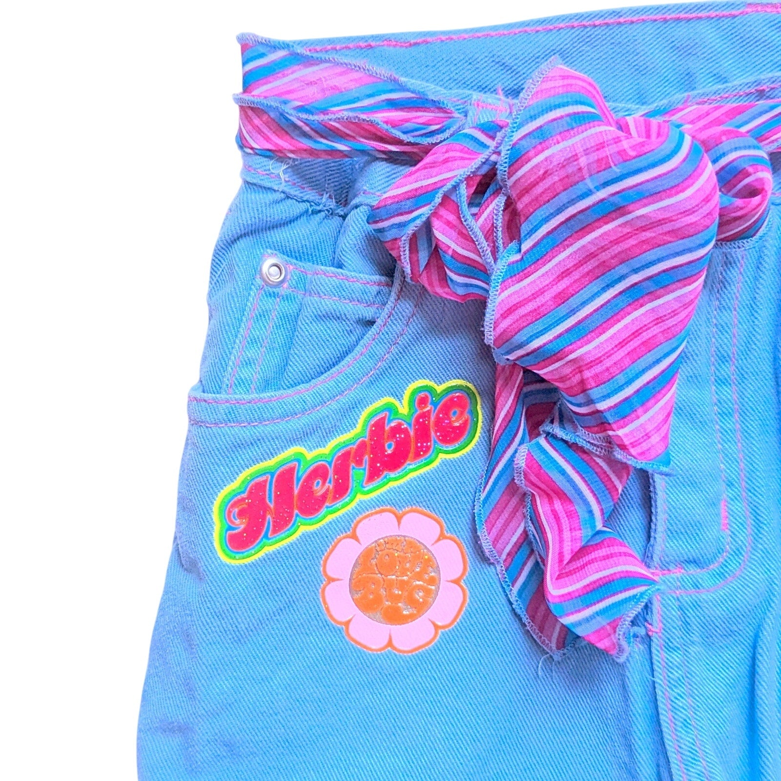 Vintage 2005 Disney Herbie Fully Loaded Pants | Girls 7/8 | Blue Cuffed Love Bug Flower Power Scarf Belt