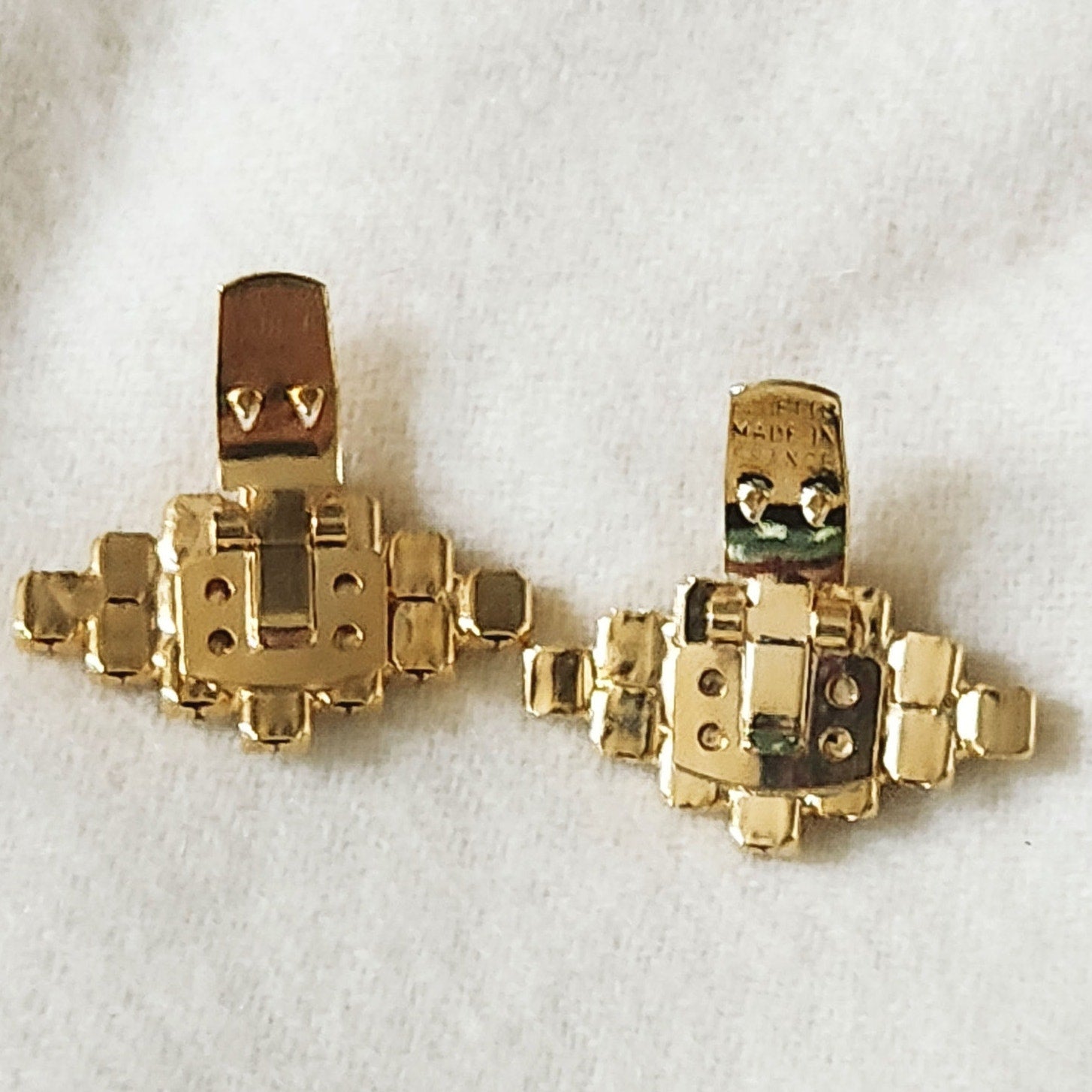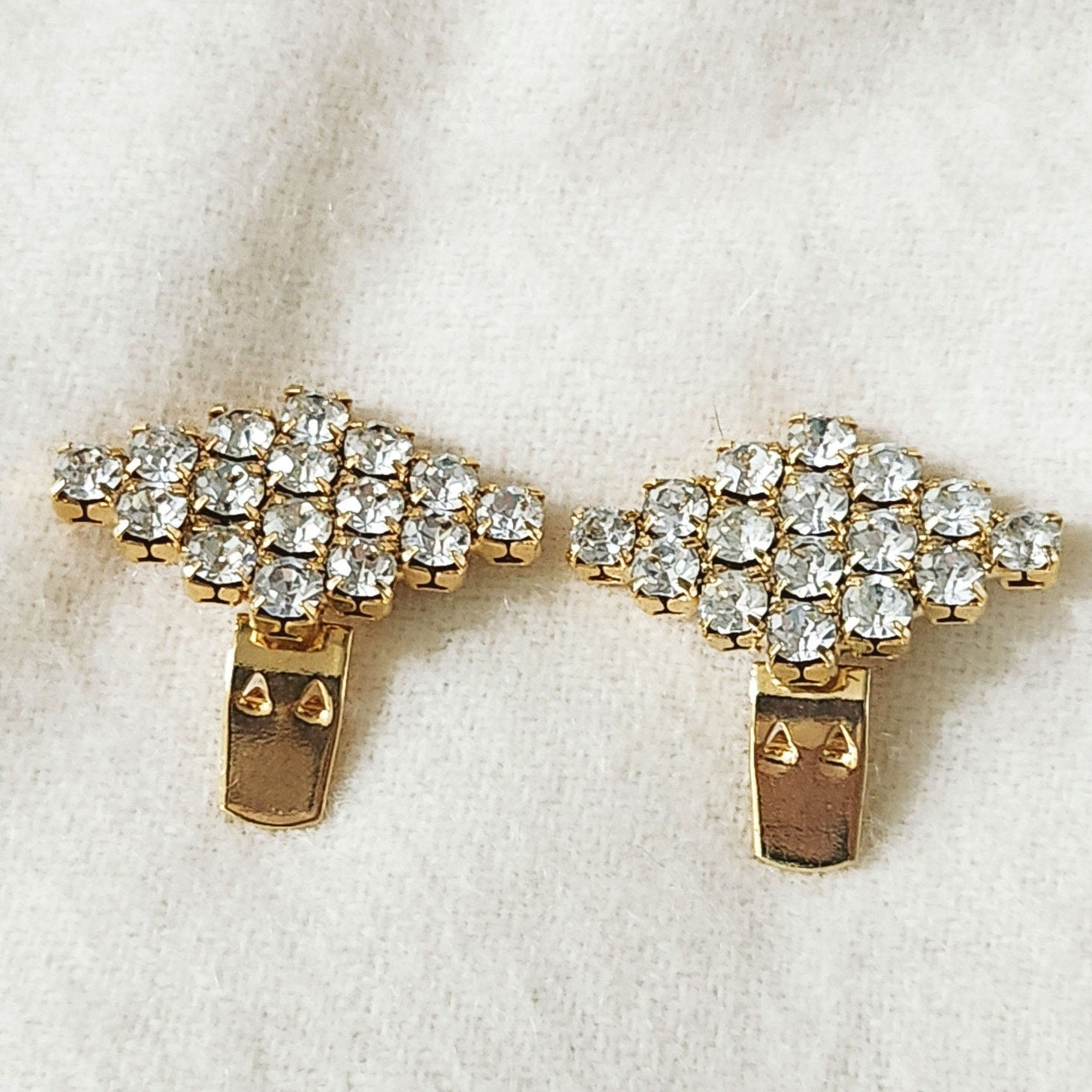 Add a touch of timeless sparkle with these stunning vintage Bluette shoe clips, made in France. Featuring brilliant prong-set rhinestones in a diamond cluster pattern on gold-tone metal, these clips elevate any pair of heels or flats with effortless mid-century sophistication.