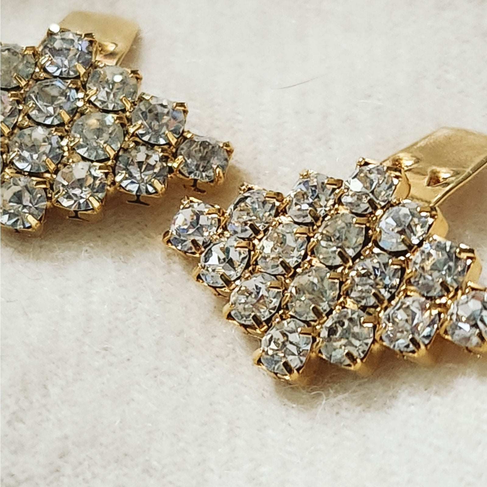 💎 Materials: Gold-tone metal, prong-set clear rhinestones