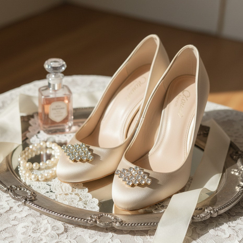 Crafted with the signature Bluette French precision, the clips have a secure spring-back mechanism that attaches easily without damaging your shoes. Perfect for weddings, holiday parties, or simply bringing a little Old Hollywood glamour to your wardrobe.
