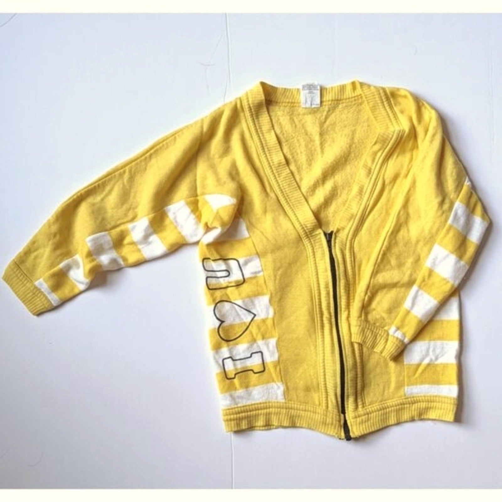 Vintage Carter’s 1980s Kids Sweater | Size 4 / 4T | Yellow & White Striped Zip Cardigan | “I ❤️ You” Sleeve | Made in USA