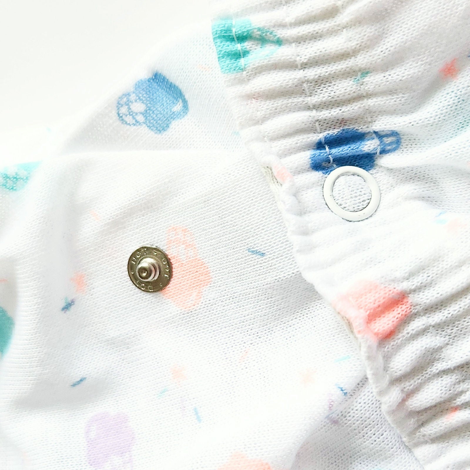 Style: Long sleeve footie pajamas – two-piece that snaps together at the waist