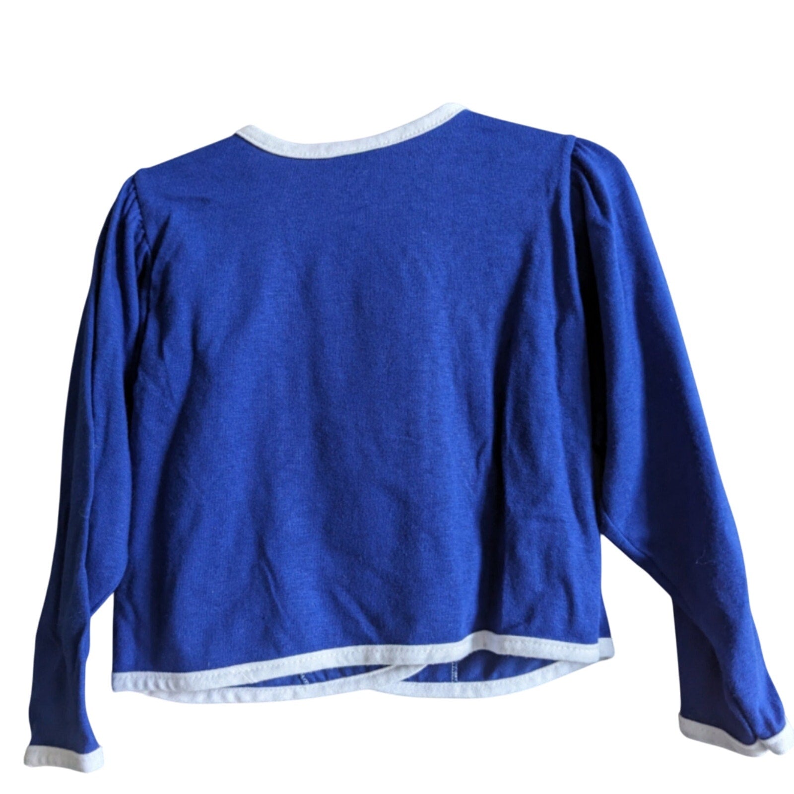 This adorable vintage Carter’s cardigan is a timeless piece for your toddler’s wardrobe or vintage clothing collection. Crafted in a beautiful royal blue cotton blend, it features: