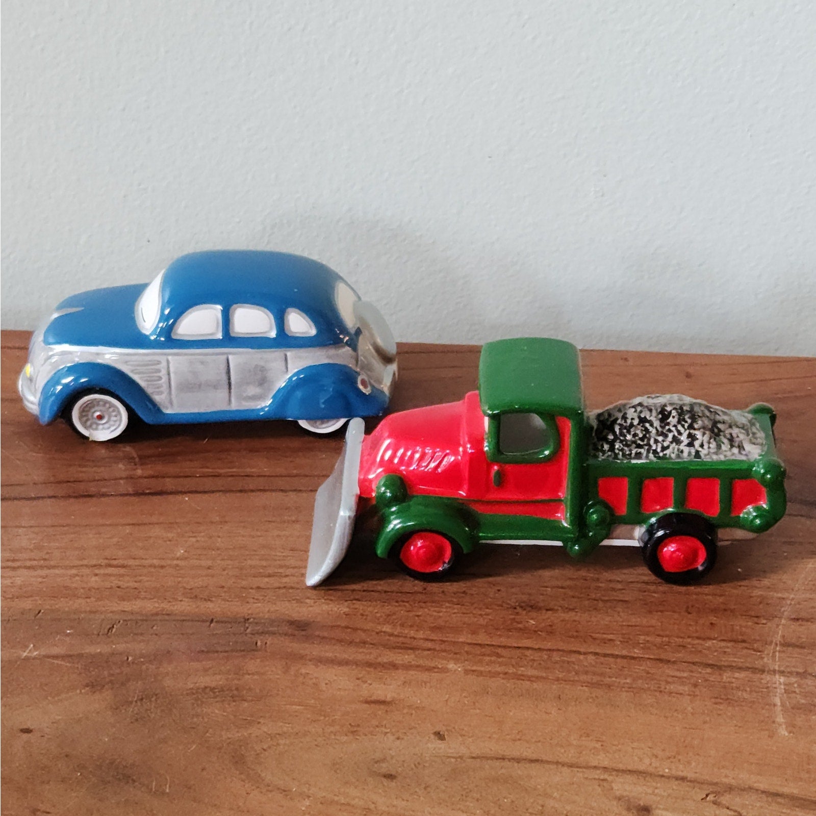 Vintage Department 56 Classic Sedan & Snow Plow β 1990s Snow Village Ceramic Vehicle Set