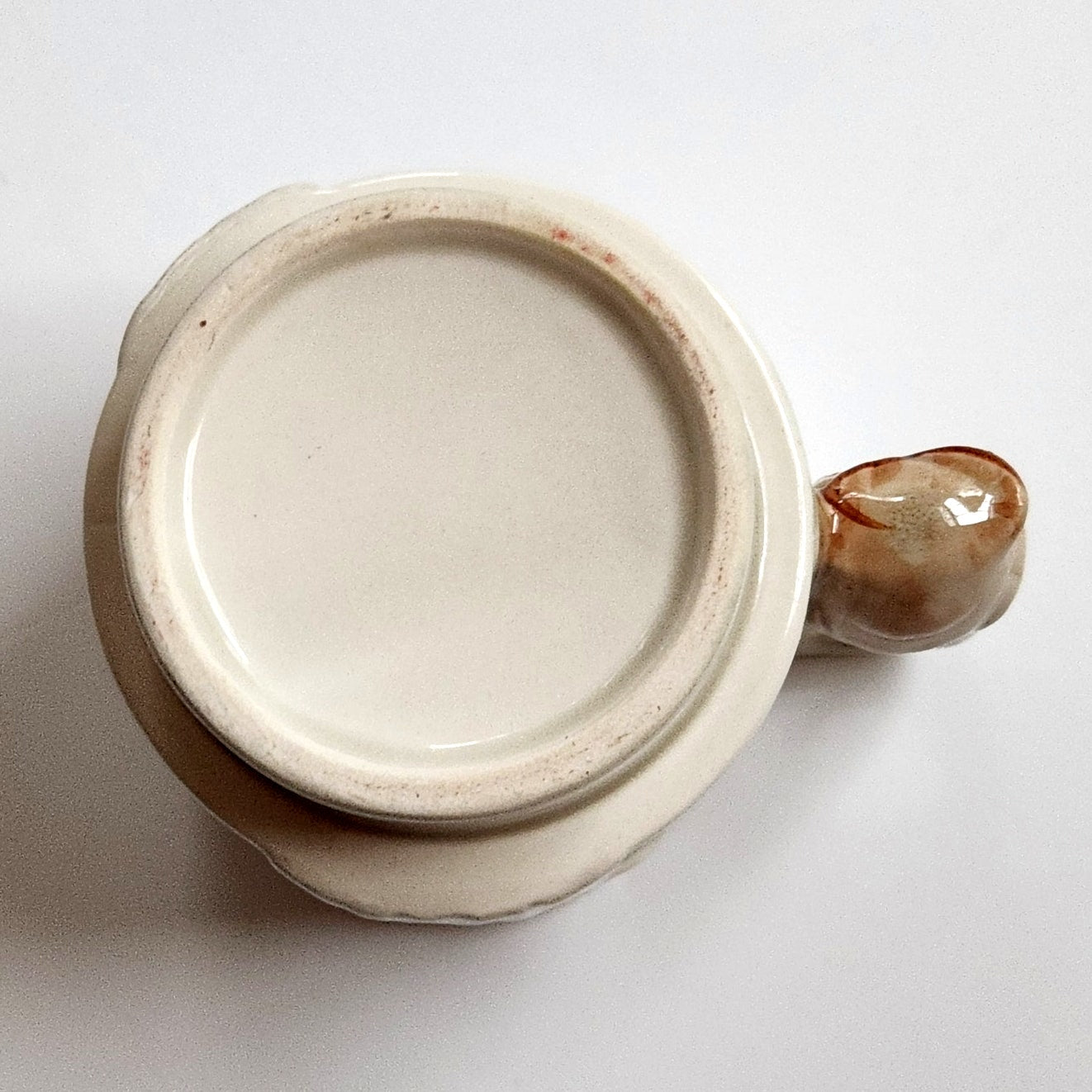 Bring charm and wisdom to your morning coffee with this vintage ceramic owl mug. Featuring a raised 3D design, it shows a wise owl perched on a branch and another upside-down owl forming the handle. The textured mug resembles a tree trunk with heartfelt carved details: