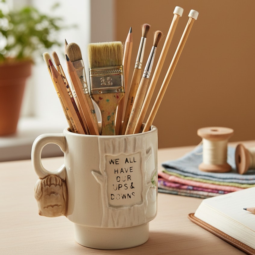 1970s 3D Owl Mom Mug and “We All Have Our Ups & Downs”