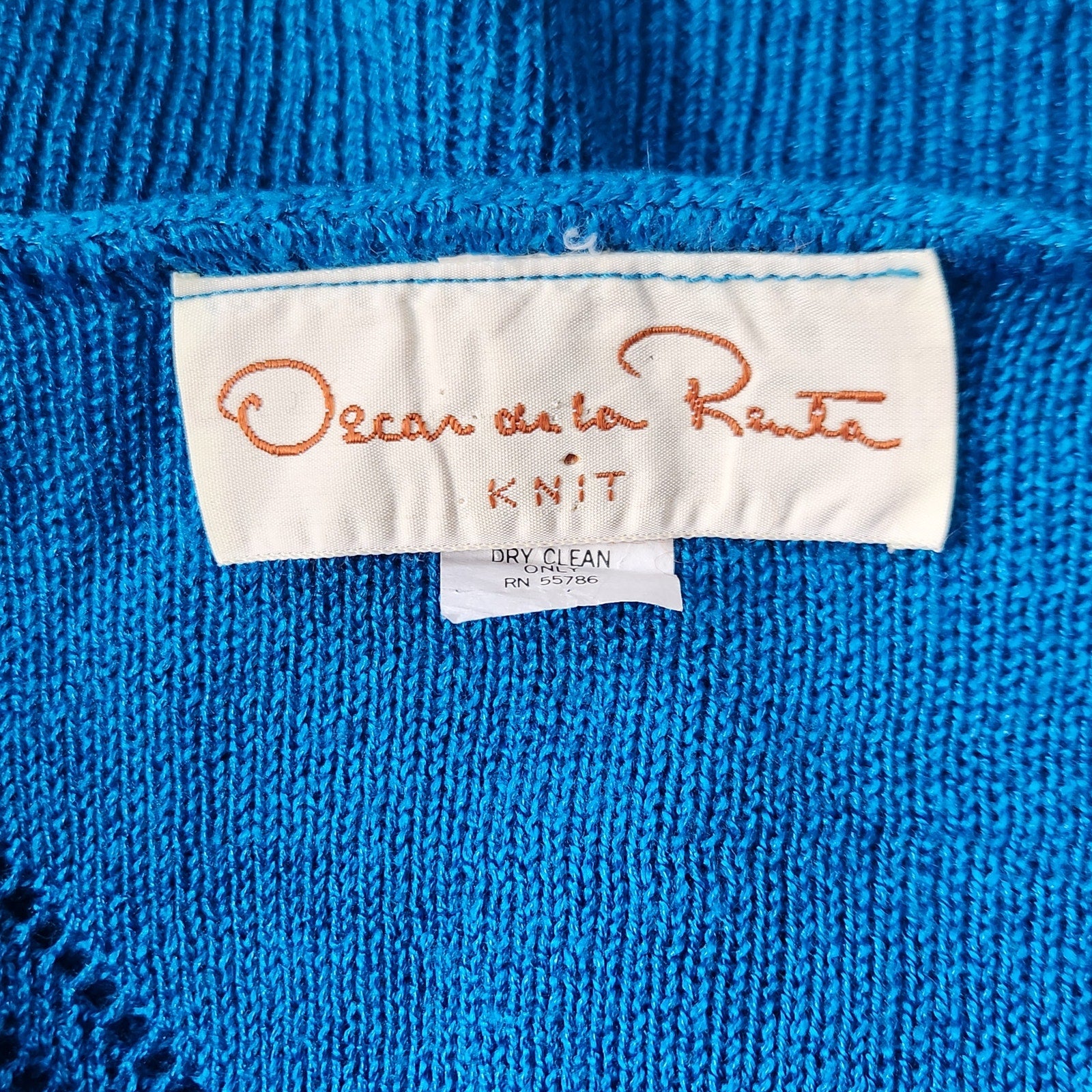 Oscar de la Renta sweater, vintage designer knitwear, 80s blue sweater, chevron knit top, luxury vintage fashion, V-neck pullover, bright blue knit, elegant retro style, collectible designer piece, timeless classic