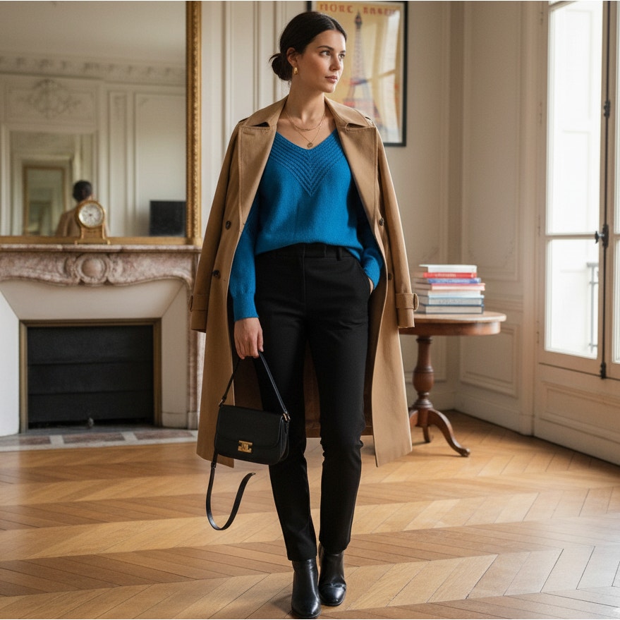 ๐ Style: V-neckline, long sleeves, ribbed hem and cuffs
