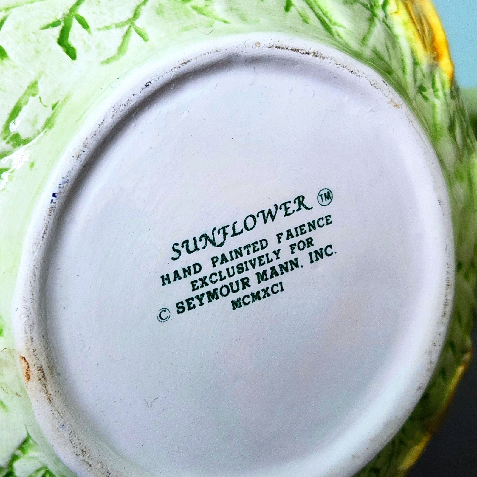 Vintage Seymour Mann Sunflower Teapot | 1991 | Hand Painted Faience Yellow Green Ceramic | Home