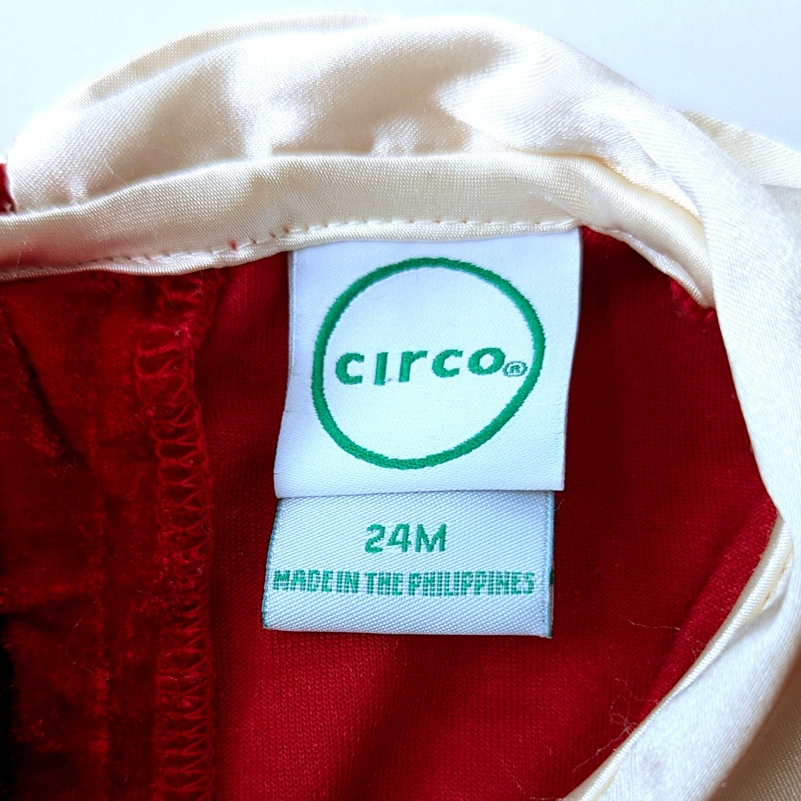 Adorable and festive Circo red velvet holiday dress — perfect for Christmas photos, family gatherings, or holiday parties! Features a classic Peter Pan collar in soft ivory satin, plush white faux fur cuffs, and a sweet black velvet ribbon detail at the waist. The cozy velour fabric has a touch of stretch for comfort and movement.