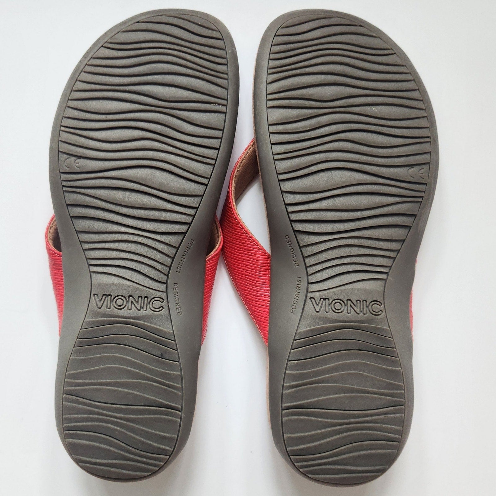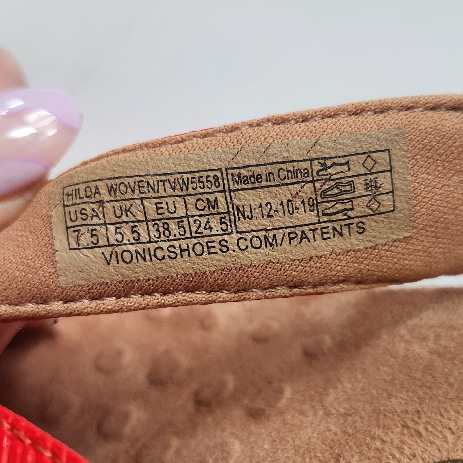 Vionic Women’s Hilda Woven Thong Sandal – Coral Red & Gold Size 7.5